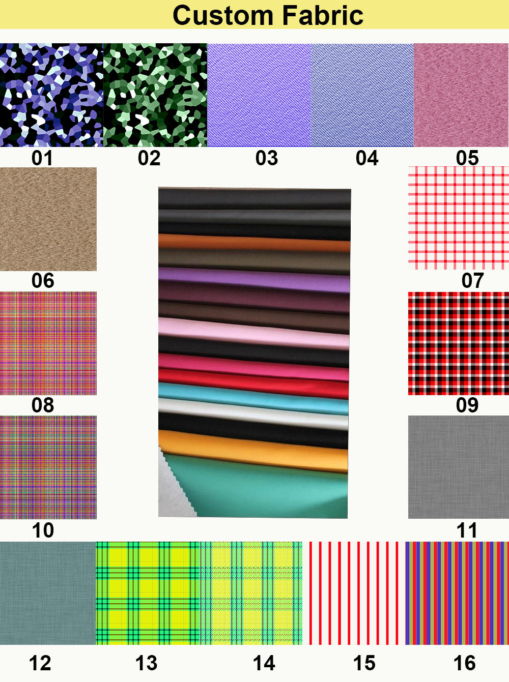 Material option: 100% Cotton ; 100% Polyester; CVC: 60%(65%) Cotton / 40%(35%) Polyester; TC: 40%(35%) Polyester / 60%(40%) Cotton